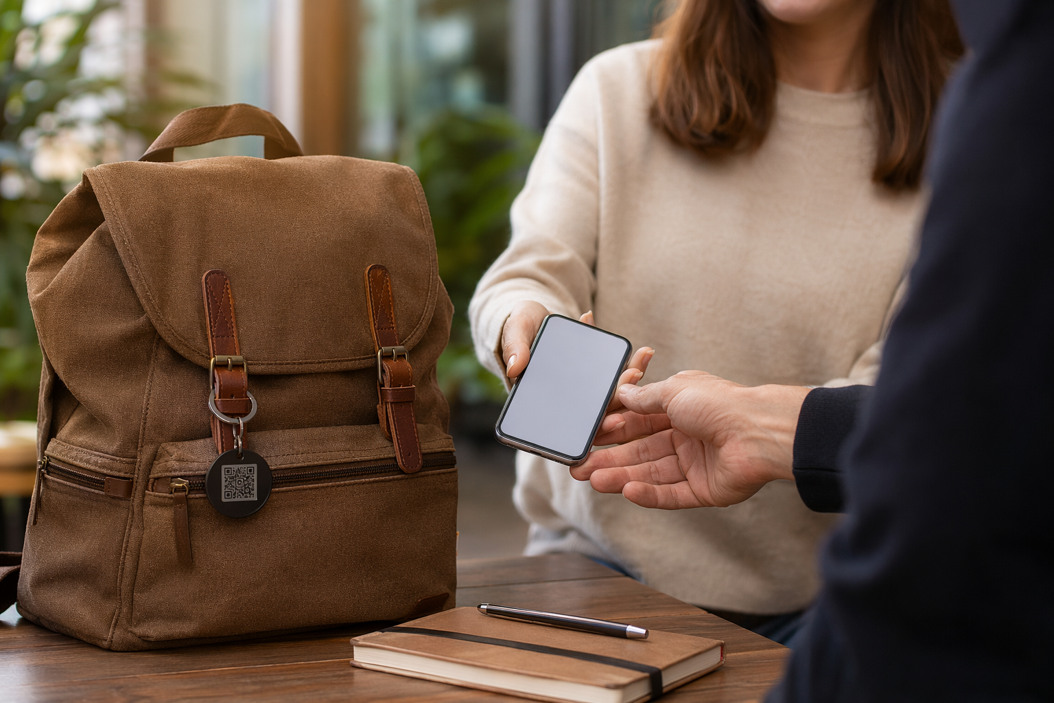 A QR-code tag takes the printed card a step further — and solves a problem permanent marker can't: privacy. With a Tagback QR tag worn as a wristband, clip-on badge, or bag tag, your phone number isn't written anywhere visible. Instead, anyone who finds your child — a park employee, another parent, a security guard — scans the QR code with their phone camera and is taken directly to a contact page that you control.